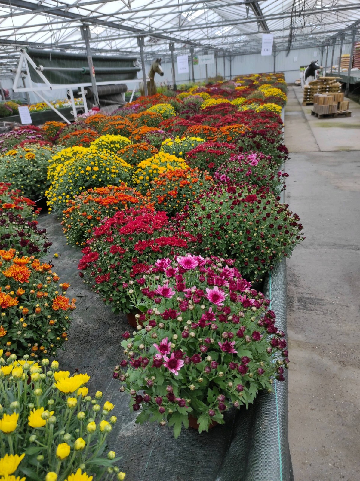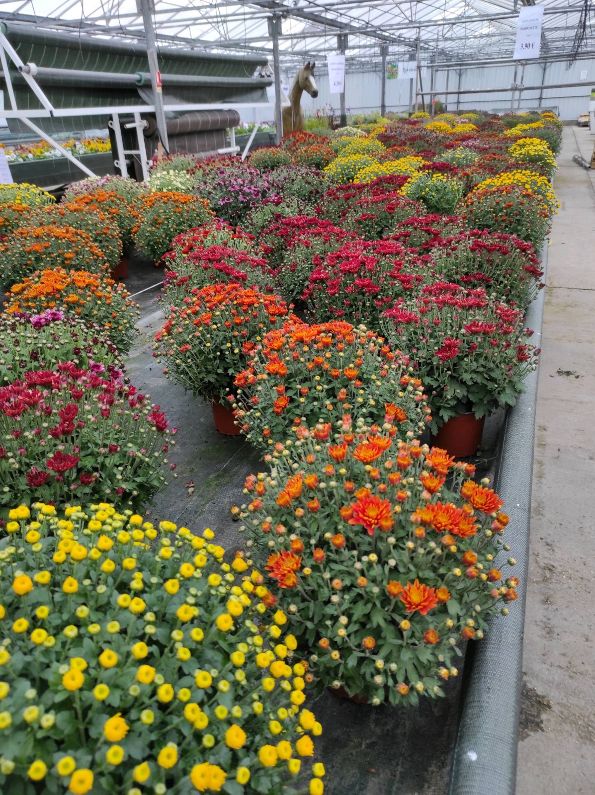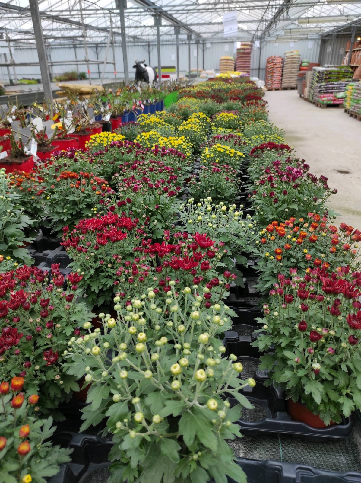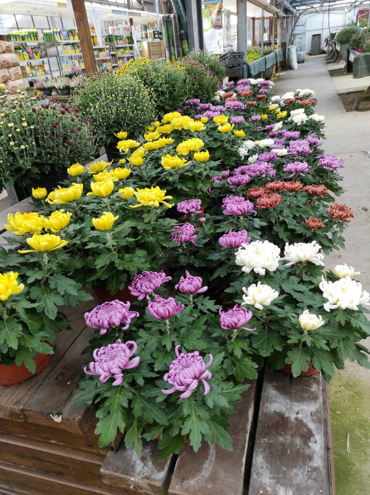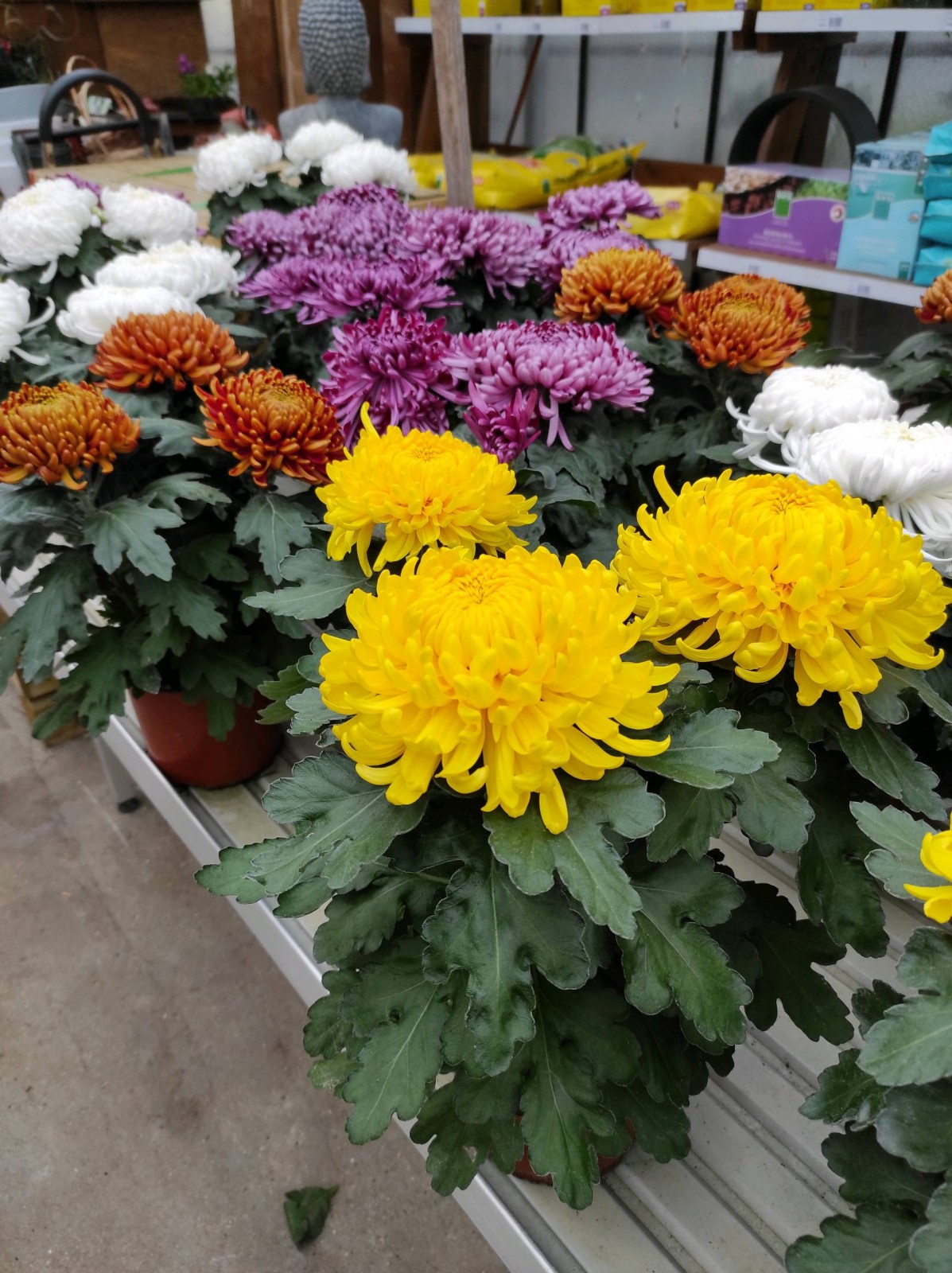 Vous y trouverez aussi des jardinières déjà toutes faites, ainsi que des compositions avec chrysanthèmes.